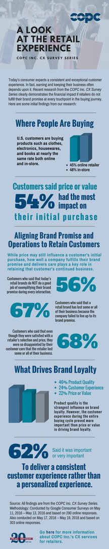 Today’s consumer expects a consistent and exceptional customer experience. In fact, earning and keeping their business often depends upon it. Recent research from the COPC Inc. CX Survey Series clearly demonstrates the financial impact if retailers do not fulfill their brand promise at every touchpoint in the buying journey.
